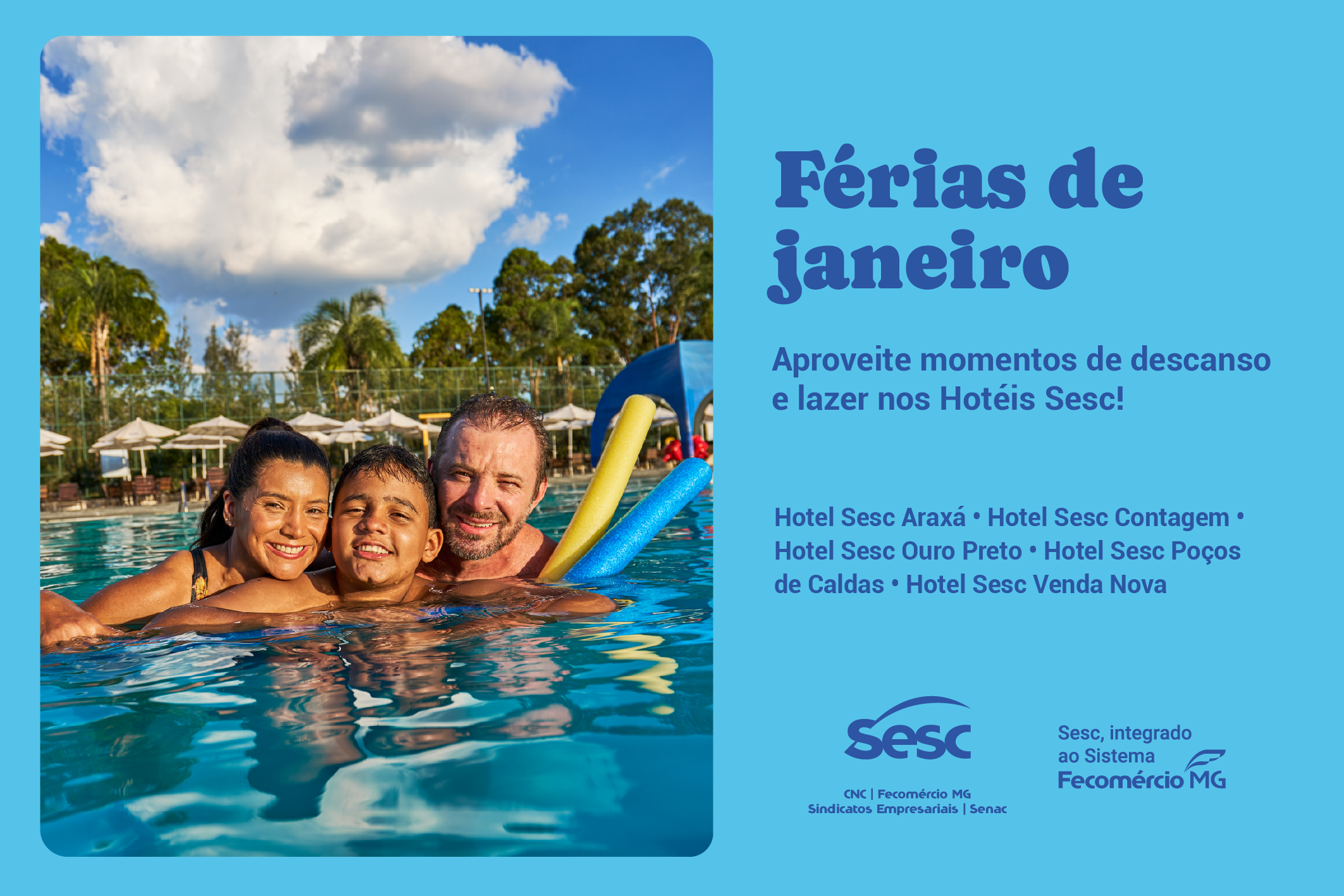 Nas férias de janeiro de 2026, aproveite momentos de descanso e lazer nos Hotéis Sesc.